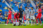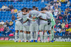 Ciudad de México, 31 de enero de 2026. Jugadores de Necaxa, durante el partido correspondiente a la jornada 4 del torneo Clausura 2026 de la Liga BBVA MX, entre las Águilas del América y los Rayos del Necaxa, realizado en el estadio Ciudad de los Deportes. Foto: Imago7/ Diego Padilla