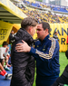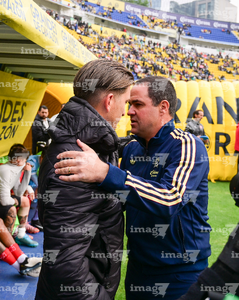 Ciudad de México, 31 de enero de 2026. Martín Varini, director técnico y Andre Jardine, director técnico, durante el partido correspondiente a la jornada 4 del torneo Clausura 2026 de la Liga BBVA MX, entre las Águilas del América y los Rayos del Necaxa, realizado en el estadio Ciudad de los Deportes. Foto: Imago7/ Alexis Chavez