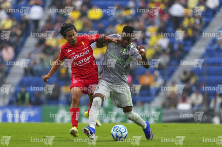 Ciudad de México, 31 de enero de 2026. Israel Tello y Cristian Borja, durante el partido correspondiente a la jornada 4 del torneo Clausura 2026 de la Liga BBVA MX, entre las Águilas del América y los Rayos del Necaxa, realizado en el estadio Ciudad de los Deportes. Foto: Imago7/ Manlio Contreras