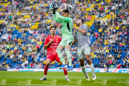 Ciudad de México, 31 de enero de 2026. Ricardo Monreal, Ángel Malagón y Sebastián Cáceres, durante el partido correspondiente a la jornada 4 del torneo Clausura 2026 de la Liga BBVA MX, entre las Águilas del América y los Rayos del Necaxa, realizado en el estadio Ciudad de los Deportes. Foto: Imago7/ Diego Padilla