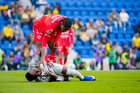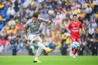 Ciudad de México, 31 de enero de 2026. Jonathan Dos Santos resultó lesionado y Henry Martín ingresa de cambio, durante el partido correspondiente a la jornada 4 del torneo Clausura 2026 de la Liga BBVA MX, entre las Águilas del América y los Rayos del Necaxa, realizado en el estadio Ciudad de los Deportes. Foto: Imago7/ Diego Padilla