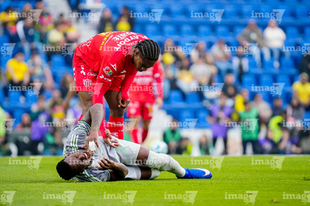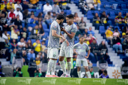 Ciudad de México, 31 de enero de 2026. Agustín Oliveros y José Zuñiga, durante el partido correspondiente a la jornada 4 del torneo Clausura 2026 de la Liga BBVA MX, entre las Águilas del América y los Rayos del Necaxa, realizado en el estadio Ciudad de los Deportes. Foto: Imago7/ Manlio Contreras