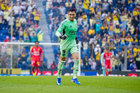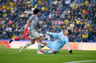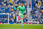 Ciudad de México, 31 de enero de 2026. Ángel Malagón en festejo de gol, durante el partido correspondiente a la jornada 4 del torneo Clausura 2026 de la Liga BBVA MX, entre las Águilas del América y los Rayos del Necaxa, realizado en el estadio Ciudad de los Deportes. Foto: Imago7/ Diego Padilla