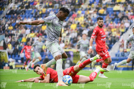 Ciudad de México, 31 de enero de 2026. Kevin Ante resultó amonestado, durante el partido correspondiente a la jornada 4 del torneo Clausura 2026 de la Liga BBVA MX, entre las Águilas del América y los Rayos del Necaxa, realizado en el estadio Ciudad de los Deportes. Foto: Imago7/ Diego Padilla