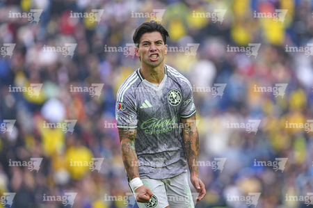 Ciudad de México, 31 de enero de 2026. Brian Rodríguez en reclamo, durante el partido correspondiente a la jornada 4 del torneo Clausura 2026 de la Liga BBVA MX, entre las Águilas del América y los Rayos del Necaxa, realizado en el estadio Ciudad de los Deportes. Foto: Imago7/ Diego Padilla