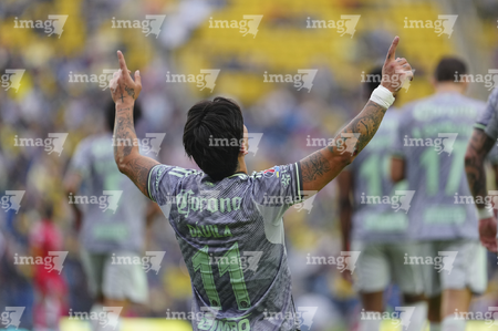 Ciudad de México, 31 de enero de 2026. Brian Rodríguez en festejo de gol, durante el partido correspondiente a la jornada 4 del torneo Clausura 2026 de la Liga BBVA MX, entre las Águilas del América y los Rayos del Necaxa, realizado en el estadio Ciudad de los Deportes. Foto: Imago7/ Alexis Chavez