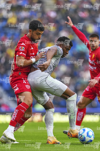 Ciudad de México, 31 de enero de 2026. Alexis Peña y Víctor Dávila, durante el partido correspondiente a la jornada 4 del torneo Clausura 2026 de la Liga BBVA MX, entre las Águilas del América y los Rayos del Necaxa, realizado en el estadio Ciudad de los Deportes. Foto: Imago7/ Diego Padilla