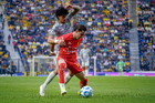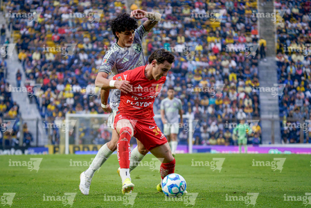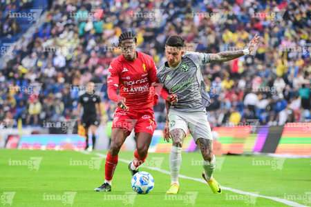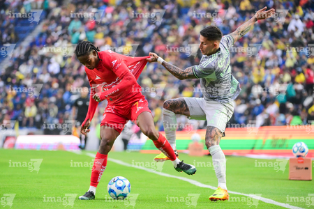 Ciudad de México, 31 de enero de 2026. Kevin Álvarez y Franco Rosano, durante el partido correspondiente a la jornada 4 del torneo Clausura 2026 de la Liga BBVA MX, entre las Águilas del América y los Rayos del Necaxa, realizado en el estadio Ciudad de los Deportes. Foto: Imago7/ Diego Padilla