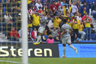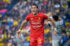 Ciudad de México, 31 de enero de 2026. Brian Rodríguez anota gol, durante el partido correspondiente a la jornada 4 del torneo Clausura 2026 de la Liga BBVA MX, entre las Águilas del América y los Rayos del Necaxa, realizado en el estadio Ciudad de los Deportes. Foto: Imago7/ Alexis Chavez