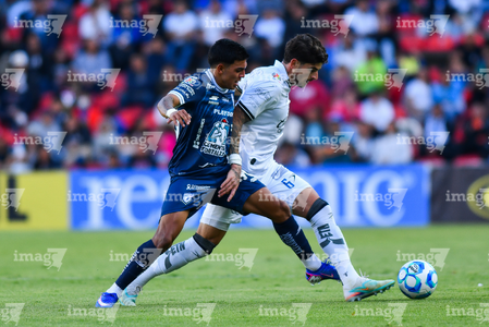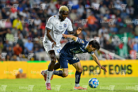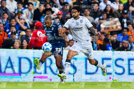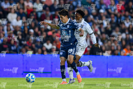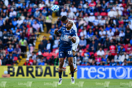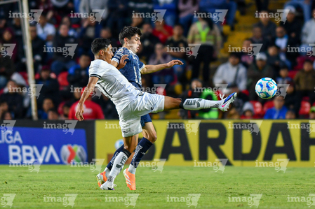 Querétaro, Querétaro, 1 de febrero de 2026. Alán Bautista y Jaime Gómez, durante el partido correspondiente a la jornada 4 del torneo Clausura 2026 de la Liga BBVA MX, entre los Gallos Blancos del Querétaro y los Tuzos del Pachuca, realizado en el estadio La Corregidora. Foto: Imago7/ Olimpia Puga