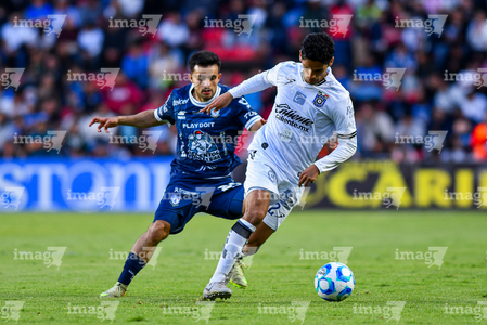 Querétaro, Querétaro, 1 de febrero de 2026. Michael Carcelen y Sergio Rodríguez, durante el partido correspondiente a la jornada 4 del torneo Clausura 2026 de la Liga BBVA MX, entre los Gallos Blancos del Querétaro y los Tuzos del Pachuca, realizado en el estadio La Corregidora. Foto: Imago7/ Olimpia Puga