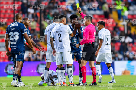 Querétaro, Querétaro, 1 de febrero de 2026. Fernando Hernández, árbitro central muestra tarjeta amarilla de amonestación, durante el partido correspondiente a la jornada 4 del torneo Clausura 2026 de la Liga BBVA MX, entre los Gallos Blancos del Querétaro y los Tuzos del Pachuca, realizado en el estadio La Corregidora. Foto: Imago7/ Olimpia Puga