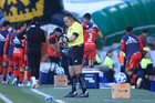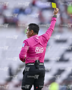 Pachuca, Hidalgo, 14 de febrero de 2026. Víctor Alfonso Cáceres , árbitro central, durante el partido correspondiente a la jornada 6 del torneo Clausura 2026 de la Liga BBVA MX, entre los Tuzos del Pachuca y los Rojinegros del Atlas, realizado en el estadio Hidalgo. Foto: Imago7/ Etzel Espinosa