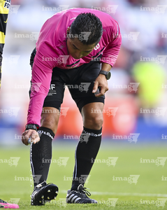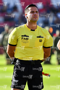 Ciudad Juárez, Chihuahua, 14 de febrero de 2026. Oscar Mejía, árbitro central, durante el partido correspondiente a la jornada 6 del torneo Clausura 2026 de la Liga BBVA MX, entre los Bravos de FC Juárez y los Rayos del Necaxa, realizado en realizado en el estadio Olímpico Benito Juárez. Foto: Imago7/ José Zamora