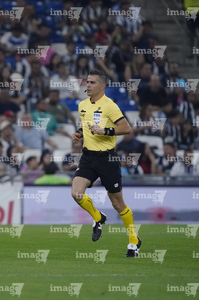 Guadalupe, Nuevo León, 14 de febrero de 2026. Fernando Hernández, árbitro central, durante el partido correspondiente a la jornada 6 del torneo Clausura 2026 de la Liga BBVA MX, entre los Rayados del Monterrey y los Esmeraldas del León, realizado en el estadio BBVA. Foto: Imago7/ Duilio muñoz