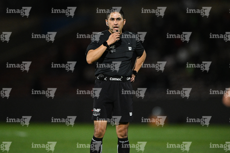 Puebla, Puebla, 13 de febrero de 2026. Ismael Rosario López Peñuelas, árbitro central, durante el partido correspondiente a la jornada 6 del torneo Clausura 2026 de la Liga BBVA MX, entre el Club Puebla y los Pumas de la UNAM, realizado en el estadio Cuauhtémoc. Foto: Imago7/ Alexis Chavez