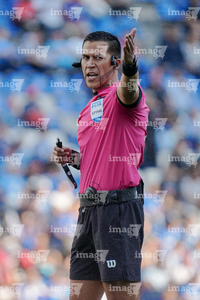 Puebla, Puebla, 15 de febrero de 2026. Daniel Quintero Huitrón, árbitro central, durante el partido correspondiente a la jornada 6 del torneo Clausura 2026 de la Liga BBVA MX, entre la Máquina Celeste del Cruz Azul y los Tigres de la UANL, realizado en el estadio Cuauhtémoc. Foto: Imago7/ Diego Padilla