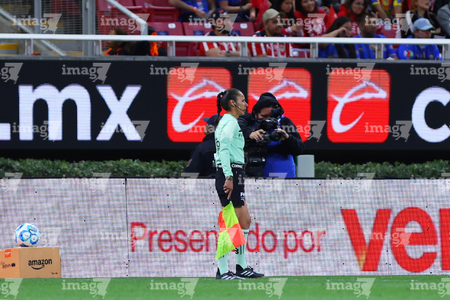 Zapopan, Jalisco, 14 de febrero de 2026. Enedina Claudillo, árbitro asistente, durante el partido correspondiente a la jornada 6 del torneo Clausura 2026 de la Liga BBVA MX, entre las Chivas Rayadas del Guadalajara y las Águilas del América, realizado en el estadio Akron. Foto: Imago7/ Juan Carlos Cubeyro.