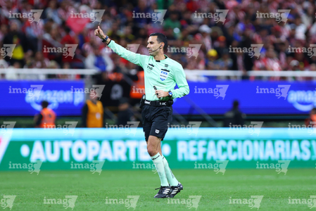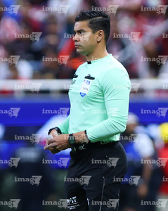 Zapopan, Jalisco, 14 de febrero de 2026. César Arturo Ramos, árbitro central, durante el partido correspondiente a la jornada 6 del torneo Clausura 2026 de la Liga BBVA MX, entre las Chivas Rayadas del Guadalajara y las Águilas del América, realizado en el estadio Akron. Foto: Imago7/ Juan Carlos Cubeyro.