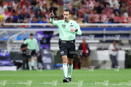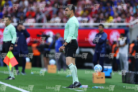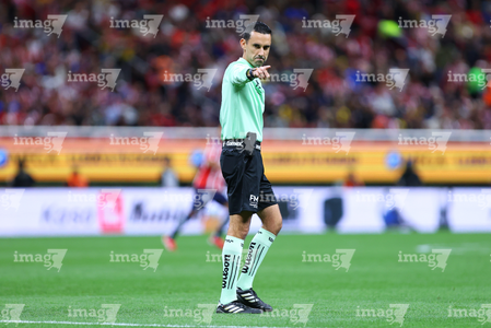 Zapopan, Jalisco, 14 de febrero de 2026. César Arturo Ramos, árbitro central, durante el partido correspondiente a la jornada 6 del torneo Clausura 2026 de la Liga BBVA MX, entre las Chivas Rayadas del Guadalajara y las Águilas del América, realizado en el estadio Akron. Foto: Imago7/Cristian Hernandez