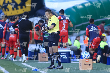Puebla, Puebla, 13 de febrero de 2026. Ismael Rosario López Peñuelas, árbitro central, durante el partido correspondiente a la jornada 6 del torneo Clausura 2026 de la Liga BBVA MX, entre el Club Puebla y los Pumas de la UNAM, realizado en el estadio Cuauhtémoc. Foto: Imago7/ Manlio Contreras