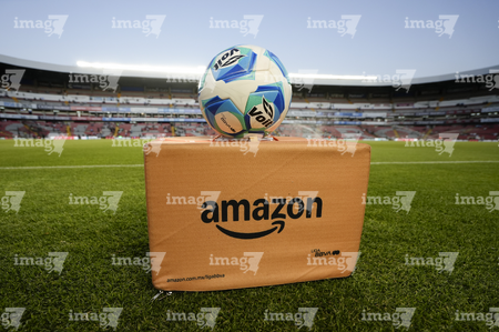 Querétaro, Querétaro, 27 de febrero de 2025. Balón de futbol Voit Aereus sobre caja de Amazon, durante el partido correspondiente a la jornada 8 del torneo Clausura 2026 de la Liga BBVA MX, entre los Gallos Blancos del Querétaro y los Guerreros de Santos Laguna, realizado en el estadio La Corregidora. Foto: Imago7/Sebastian Laureano Miranda