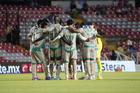 Querétaro, Querétaro, 27 de febrero de 2025. Jugadores de Querétaro, durante el partido correspondiente a la jornada 8 del torneo Clausura 2026 de la Liga BBVA MX, entre los Gallos Blancos del Querétaro y los Guerreros de Santos Laguna, realizado en el estadio La Corregidora. Foto: Imago7/Sebastian Laureano Miranda