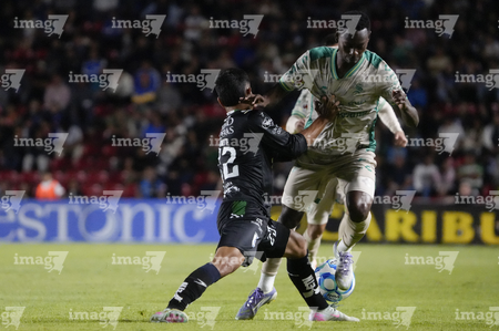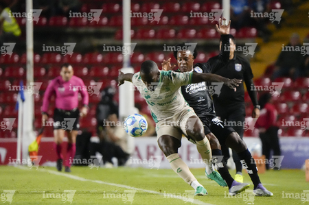 Querétaro, Querétaro, 27 de febrero de 2025. Kevin Balanta y Jhojan Julio Palacios, durante el partido correspondiente a la jornada 8 del torneo Clausura 2026 de la Liga BBVA MX, entre los Gallos Blancos del Querétaro y los Guerreros de Santos Laguna, realizado en el estadio La Corregidora. Foto: Imago7/Sebastian Laureano Miranda