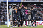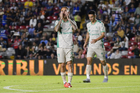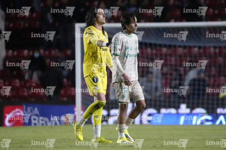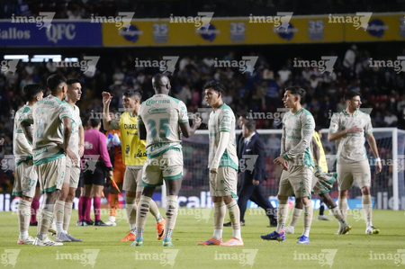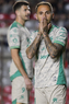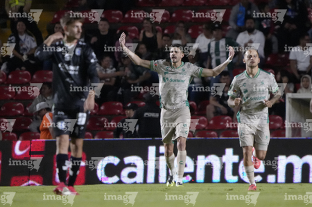 Querétaro, Querétaro, 27 de febrero de 2025. Jugadores del Santos Laguna en lamento, durante el partido correspondiente a la jornada 8 del torneo Clausura 2026 de la Liga BBVA MX, entre los Gallos Blancos del Querétaro y los Guerreros de Santos Laguna, realizado en el estadio La Corregidora. Foto: Imago7/Sebastian Laureano Miranda
