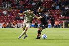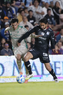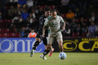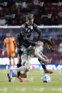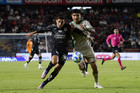 Querétaro, Querétaro, 27 de febrero de 2025. Diego Reyes y Lucca Vuoso, durante el partido correspondiente a la jornada 8 del torneo Clausura 2026 de la Liga BBVA MX, entre los Gallos Blancos del Querétaro y los Guerreros de Santos Laguna, realizado en el estadio La Corregidora. Foto: Imago7/Sebastian Laureano Miranda