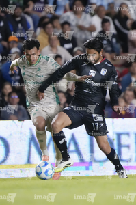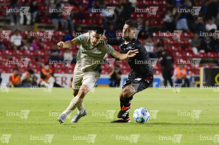 Querétaro, Querétaro, 27 de febrero de 2025. Mateo Coronel y Bruno Amione, durante el partido correspondiente a la jornada 8 del torneo Clausura 2026 de la Liga BBVA MX, entre los Gallos Blancos del Querétaro y los Guerreros de Santos Laguna, realizado en el estadio La Corregidora. Foto: Imago7/ Duilio Muñoz