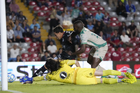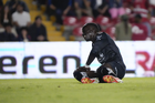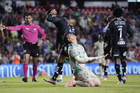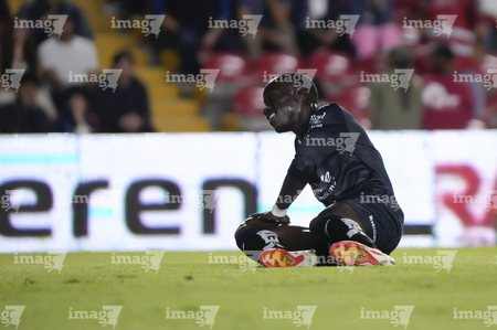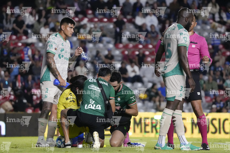 Querétaro, Querétaro, 27 de febrero de 2025. Carlos Acevedo resultó lesionado, durante el partido correspondiente a la jornada 8 del torneo Clausura 2026 de la Liga BBVA MX, entre los Gallos Blancos del Querétaro y los Guerreros de Santos Laguna, realizado en el estadio La Corregidora. Foto: Imago7/Sebastian Laureano Miranda