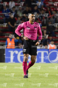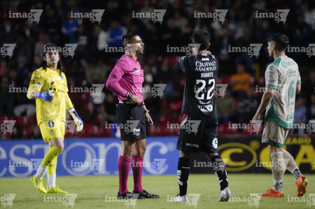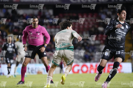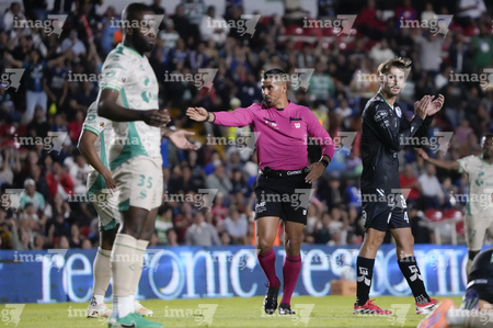 Querétaro, Querétaro, 27 de febrero de 2025. Abraham de Jesús Quirarte, árbitro central, durante el partido correspondiente a la jornada 8 del torneo Clausura 2026 de la Liga BBVA MX, entre los Gallos Blancos del Querétaro y los Guerreros de Santos Laguna, realizado en el estadio La Corregidora. Foto: Imago7/ Duilio Muñoz