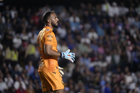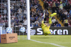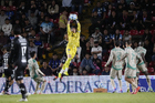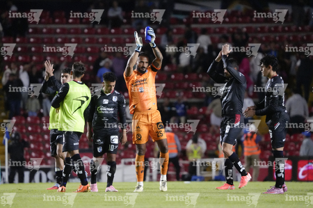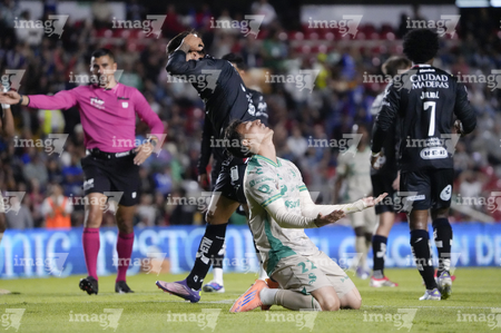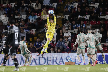 Querétaro, Querétaro, 27 de febrero de 2025. Carlos Acevedo recibe gol, durante el partido correspondiente a la jornada 8 del torneo Clausura 2026 de la Liga BBVA MX, entre los Gallos Blancos del Querétaro y los Guerreros de Santos Laguna, realizado en el estadio La Corregidora. Foto: Imago7/Sebastian Laureano Miranda