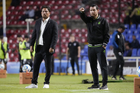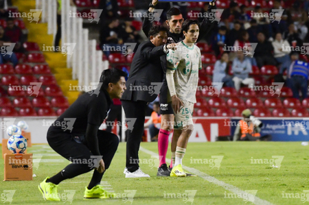 Querétaro, Querétaro, 27 de febrero de 2025. Omar Tapia, director técnico y Rafael Figueroa, auxiliar técnico, durante el partido correspondiente a la jornada 8 del torneo Clausura 2026 de la Liga BBVA MX, entre los Gallos Blancos del Querétaro y los Guerreros de Santos Laguna, realizado en el estadio La Corregidora. Foto: Imago7/Sebastian Laureano Miranda