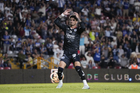 Querétaro, Querétaro, 27 de febrero de 2025. Santiago Homenchenko en festejo de gol, durante el partido correspondiente a la jornada 8 del torneo Clausura 2026 de la Liga BBVA MX, entre los Gallos Blancos del Querétaro y los Guerreros de Santos Laguna, realizado en el estadio La Corregidora. Foto: Imago7/Sebastian Laureano Miranda