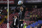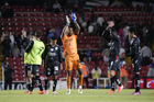 Querétaro, Querétaro, 27 de febrero de 2025. Carlos Acevedo regala sus guantes, durante el partido correspondiente a la jornada 8 del torneo Clausura 2026 de la Liga BBVA MX, entre los Gallos Blancos del Querétaro y los Guerreros de Santos Laguna, realizado en el estadio La Corregidora. Foto: Imago7/Sebastian Laureano Miranda