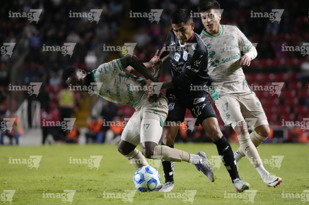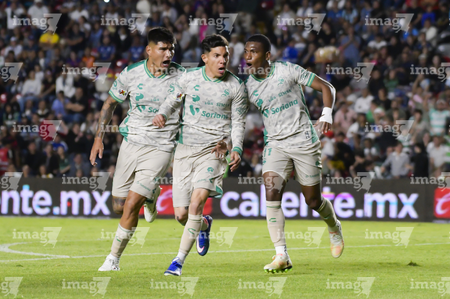 Querétaro, Querétaro, 27 de febrero de 2025. Jugadores del Santos Laguna, durante el partido correspondiente a la jornada 8 del torneo Clausura 2026 de la Liga BBVA MX, entre los Gallos Blancos del Querétaro y los Guerreros de Santos Laguna, realizado en el estadio La Corregidora. Foto: Imago7/Sebastian Laureano Miranda