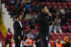 Querétaro, Querétaro, 27 de febrero de 2025. Omar Tapia, director técnico, durante el partido correspondiente a la jornada 8 del torneo Clausura 2026 de la Liga BBVA MX, entre los Gallos Blancos del Querétaro y los Guerreros de Santos Laguna, realizado en el estadio La Corregidora. Foto: Imago7/Sebastian Laureano Miranda