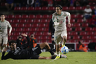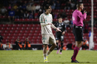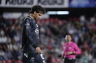 Querétaro, Querétaro, 27 de febrero de 2025. Diego Reyes en lamento, durante el partido correspondiente a la jornada 8 del torneo Clausura 2026 de la Liga BBVA MX, entre los Gallos Blancos del Querétaro y los Guerreros de Santos Laguna, realizado en el estadio La Corregidora. Foto: Imago7/Sebastian Laureano Miranda