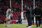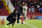 Querétaro, Querétaro, 27 de febrero de 2025. Santiago Homenchenko en lamento, durante el partido correspondiente a la jornada 8 del torneo Clausura 2026 de la Liga BBVA MX, entre los Gallos Blancos del Querétaro y los Guerreros de Santos Laguna, realizado en el estadio La Corregidora. Foto: Imago7/Sebastian Laureano Miranda