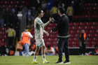 Querétaro, Querétaro, 27 de febrero de 2025. Lucas Abascia en minuto de aplausos, durante el partido correspondiente a la jornada 8 del torneo Clausura 2026 de la Liga BBVA MX, entre los Gallos Blancos del Querétaro y los Guerreros de Santos Laguna, realizado en el estadio La Corregidora. Foto: Imago7/Sebastian Laureano Miranda