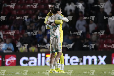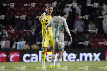 Querétaro, Querétaro, 27 de febrero de 2025. Carlos Acevedo y Lucca Vuoso, durante el partido correspondiente a la jornada 8 del torneo Clausura 2026 de la Liga BBVA MX, entre los Gallos Blancos del Querétaro y los Guerreros de Santos Laguna, realizado en el estadio La Corregidora. Foto: Imago7/Sebastian Laureano Miranda