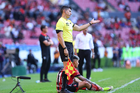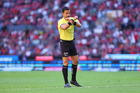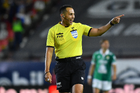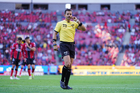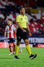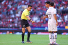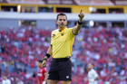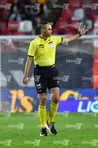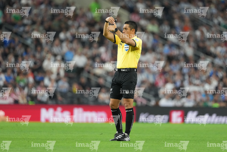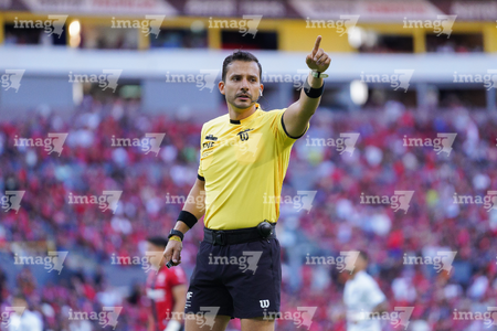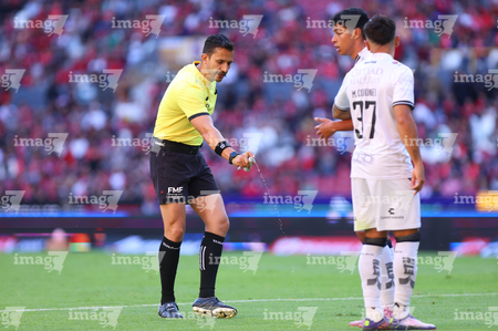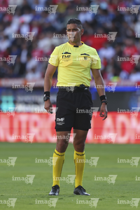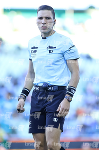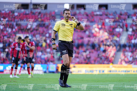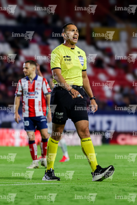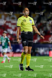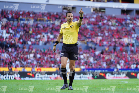 Guadalajara, Jalisco, 21 de marzo de 2026. Luis Alfredo García, árbitro central, durante el partido correspondiente a la jornada 12 del torneo Clausura 2026 de la Liga BBVA MX, entre los Rojinegros del Atlas y los Gallos Blancos del Querétaro, realizado en el estadio Jalisco. Foto: Imago7/ Juan Carlos Cubeyro.