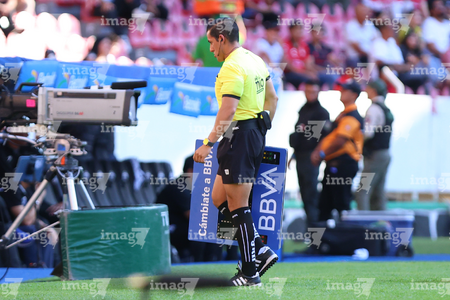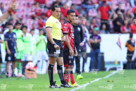 Guadalajara, Jalisco, 21 de marzo de 2026. Mario Terrazas, cuarto árbitro, durante el partido correspondiente a la jornada 12 del torneo Clausura 2026 de la Liga BBVA MX, entre los Rojinegros del Atlas y los Gallos Blancos del Querétaro, realizado en el estadio Jalisco. Foto: Imago7/ Juan Carlos Cubeyro.