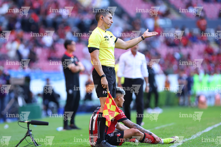 Guadalajara, Jalisco, 21 de marzo de 2026. Jaime Daniel González, árbitro asistente, durante el partido correspondiente a la jornada 12 del torneo Clausura 2026 de la Liga BBVA MX, entre los Rojinegros del Atlas y los Gallos Blancos del Querétaro, realizado en el estadio Jalisco. Foto: Imago7/Andrés Sepúlveda