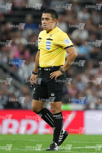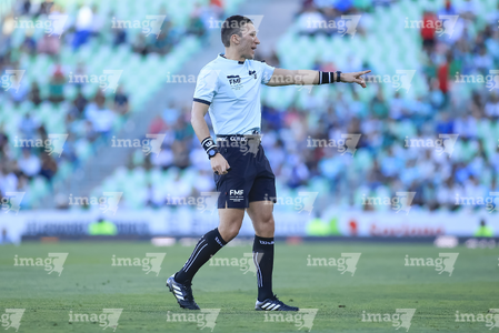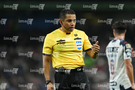Guadalupe, Nuevo León, 21 de marzo de 2026. Víctor Alfonso Cáceres, árbitro central, durante el partido correspondiente a la jornada 12 del torneo Clausura 2026 de la Liga BBVA MX, entre los Rayados del Monterrey y las Chivas Rayadas del Guadalajara, realizado en el estadio BBVA. Foto: Imago7/