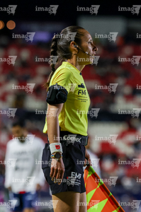 Guadalajara, Jalisco, 21 de marzo de 2026. Jonathan Maximiliano Gómez, árbitro asistente, durante el partido correspondiente a la jornada 12 del torneo Clausura 2026 de la Liga BBVA MX, entre los Rojinegros del Atlas y los Gallos Blancos del Querétaro, realizado en el estadio Jalisco. Foto: Imago7/ Juan Carlos Cubeyro.