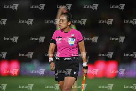 San Luis Potosí, San Luis Potosí, 21 de marzo de 2026. Enedina Caudillo, árbitro asistente, durante el partido correspondiente a la jornada 12 del torneo Clausura 2026 de la Liga BBVA MX, entre el Atlético San Luis y los Esmeraldas del León, realizado en el estadio Libertad Financiera. Foto: Imago7/ Hugo Martinez