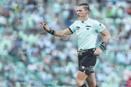 San Luis Potosí, San Luis Potosí, 21 de marzo de 2026. Luis Enrique Santander, árbitro central, durante el partido correspondiente a la jornada 12 del torneo Clausura 2026 de la Liga BBVA MX, entre el Atlético San Luis y los Esmeraldas del León, realizado en el estadio Libertad Financiera. Foto: Imago7/ Hugo Martinez